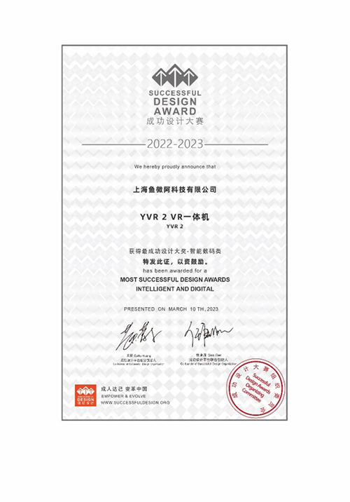 近日,2022-2023成功设计大奖获奖榜单发布,全球领先的虚拟现实科技品牌YVR凭借其旗舰产品YVR 2眼镜斩获该项大奖。先锋新潮的人文美学理念,极致细节的人体工学设计,YVR以纯粹设计为用户带来面向未来的科幻体验。