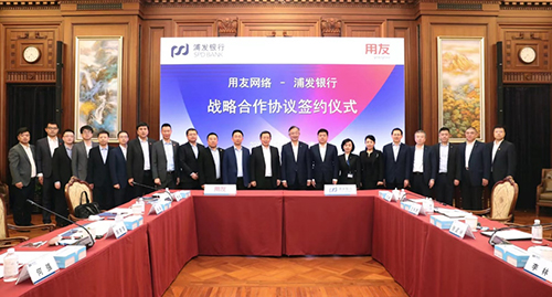 4月24日,用友网络科技股份有限公司(以下简称“用友”)与上海浦东发展银行股份有限公司(以下简称“浦发银行”)高层交流座谈会于上海浦发银行总行召开。会上双方签署战略合作协议,达成深度战略合作。用友网络董事长兼CEO王文京、浦发银行总行行长潘卫东等双方多位高层领导出席交流会,并见证了本次签约仪式。