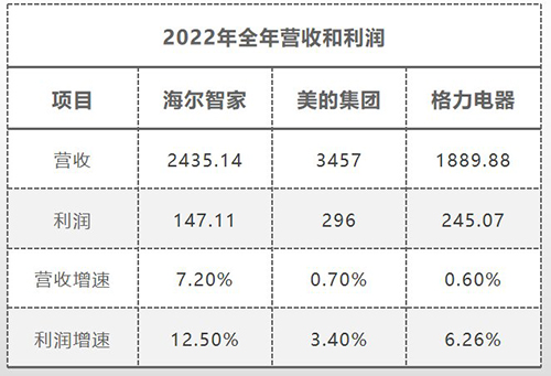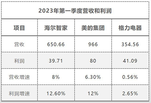 通过财报也可以看到,海尔智家2022年营收和利润增速与2023年一季度基本相当,而美的集团的波动率较大。