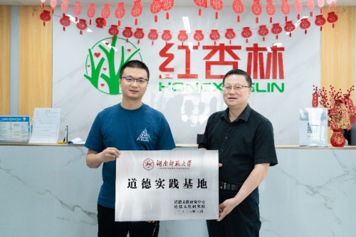 本次湖南师范大学道德文化研究院、公共管理学院到访红杏林,经过双方高效而坦诚的对话,达成合作意向。当日下午,在红杏林总部举行了授牌仪式,湖南师范大学道德文化研究院授予红杏林“道德实践基地”牌匾,湖南师范大学公共管理学院哲学系授予红杏林“社会实践与教育实习基地”牌匾。