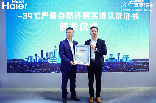 现场,鉴于该方案在漠河用户家中的实践成果,中国电器院CVC威凯再次为海尔智慧楼宇颁发“严酷自然环境实地认证证书”。此前,该方案在中国气温最低县漠河的挑战里,实现了室外温度-39℃的情况下,室内温度达18℃,并保持了高效、稳定运转,获得用户和行业的一致认可。