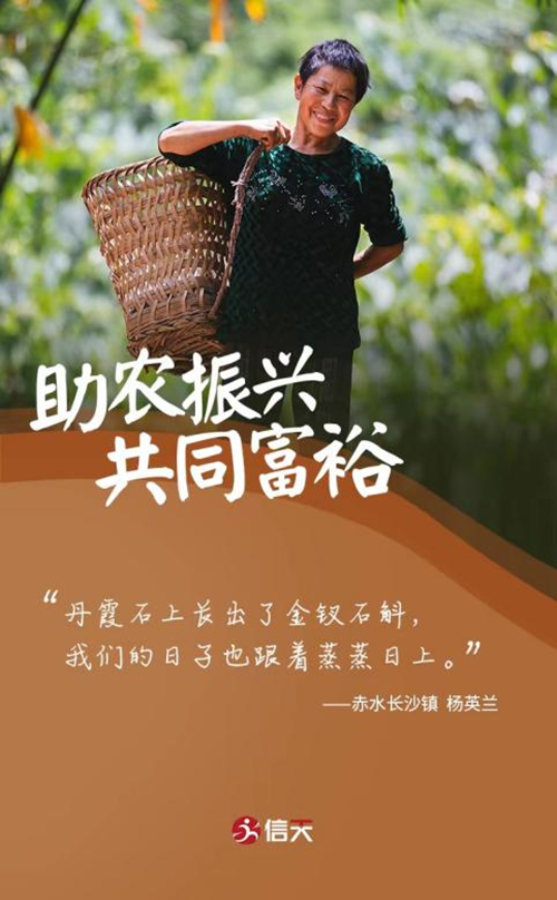 信天不忘一路走来社会各界给予的帮助及赤水农户的辛勤付出。为回馈社会,信天秉持初心,依托10万亩野外原生态基地资源,采取“龙头企业+政府平台企业+村集体+农户”的助农模式,凝聚爱心企业家力量,打造了“我家有亩金钗石斛”的认养计划,助力斛农增收。