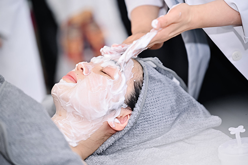此次美博会,在产品展示区之外还设有产品体验区,邀请两位日本美肌师“杉本老师、神野老师”亲临现场,作为专业的皮肤护理师,她们通过对体验者肌肤的分析和评估,为体验者提供最适合的护理方案和产品。在基本的护理服务之上,还能够通过手法和技巧与产品结合,加乘发挥功效,使皮肤更加水嫩、光滑、有弹性,让体验者收获沉浸式美肌体验。