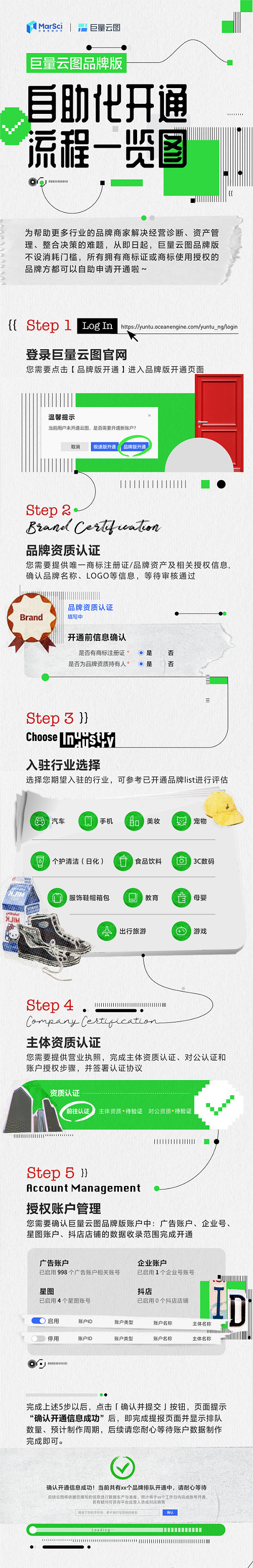 巨量云图品牌版,承接巨量引擎全平台优势,连接巨量全生态,以全内容、全触点、全数据、全链路的精细化管理,帮助品牌穿越周期,看清生意做好决策。在以往,品牌需要满足一定广告消耗才能开通巨量云图。现在,为帮助更多品牌商家做好营销与生意经营,巨量云图品牌版自助化开通能力上线啦!拥有品牌资质认证的商家朋友,均可获得巨量云图品牌版经营入场券,轻松开启生意经营第一步。