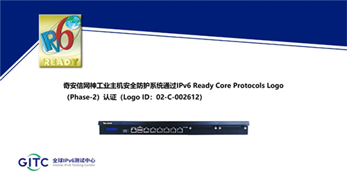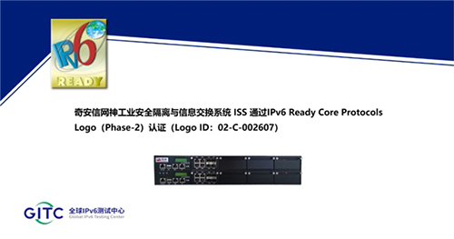 近期,奇安信网神信息技术(北京)股份有限公司旗下的5款工业网络安全产品在下一代互联网国家工程中心-全球IPv6测试中心正式通过IPv6 Ready核心协议Phase-2测试,获得由国际组织IPv6 Forum颁发的IPv6 Ready Logo Phase-2认证证书。产品分别为:奇安信网神工业入侵检测系统 IIDS(02-C-002596),奇安信网神工业安全审计系统 ISAS(02-C-002603),奇安信网神工业安全监测系统 ISD(02-C-002604),奇安信网神工业安全隔离与信息交换系统 ISS(02-C-002607),奇安信网神工业主机安全防护系统(02-C-002612)。