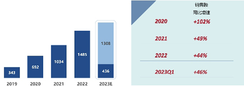 根据Sandalwood药品电商零售市场监测数据,2023年第一季度药品+保健品市场同比增长46%,保持强劲增长态势。药品零售电商市场迎来强劲增长,同比增长51%,销售额达145亿元。