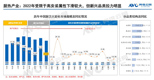 奥维云网(AVC)数据显示,2022年厨卫大家电(烟、灶、消、洗、嵌、集、热、净)零售额规模为1586亿元,同比下滑9.6%。而洗碗机却逆势增长3%,是增速最快的品类。