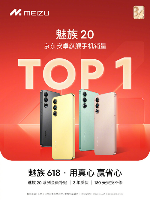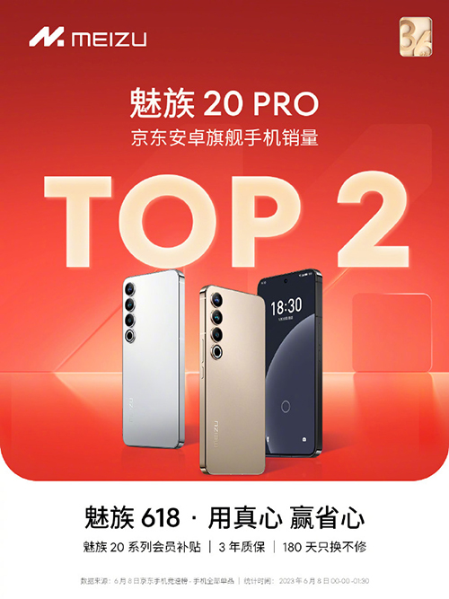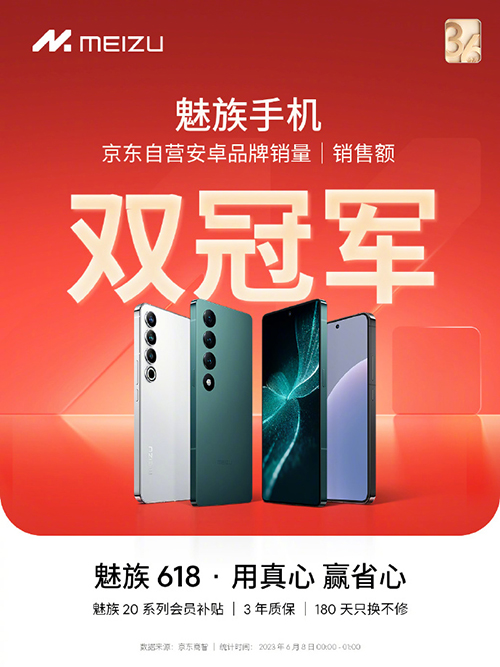 在6月8日,魅族公布了618的战绩。魅族在京东PLUS DAY上取得了令人瞩目的成绩!这次活动中,魅族手机力夺榜首,力压一众品牌。不仅斩获了京东自营安卓品牌销量和销售额的双冠军,魅族20在安卓旗舰手机销量上还获得了第一的位置,魅族20 Pro则位居第二。这一成绩再次证明了魅族在手机市场的强劲实力和广大用户的认可。