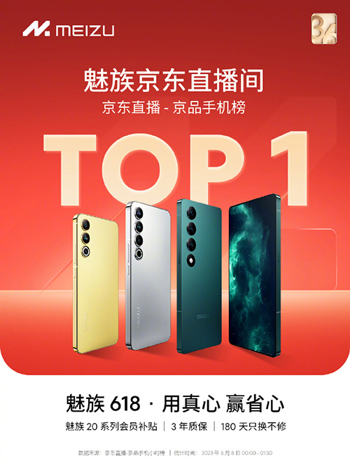 除了销量方面的优异表现,魅族在京东直播中也取得了卓越的成绩。魅族京东直播间斩获了京东直播 -京品手机榜的第一名,再次展现了魅族20系列手机的吸引力,以及用户对魅族的热爱。这些卓越的成绩是对魅族不断努力的肯定,也是对其产品和品牌的高度认可。魅族不断追求技术创新和产品品质的提升,这才是魅族获胜的关键!