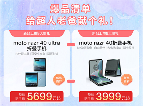 例如近日爆卖的moto razr 40 Ultra折叠手机到手预估价仅5699元,moto razr 40折叠手机到手预估价3999元,可谓性价比极高。