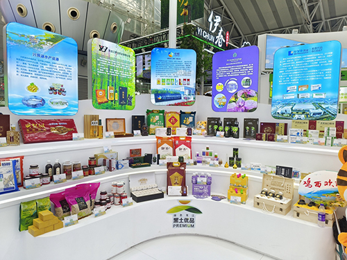 图为第三十二届哈尔滨国际经济贸易洽谈会虎林市参展产品