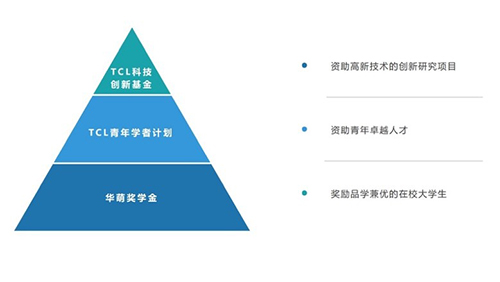 一流大学是基础研究的主力军和重大科技突破的策源地,为促进高等学府教育建设,为社会培养更多科技创新人才,TCL公益基金会自2022年启动TCL高校捐赠体系,以“TCL科技创新基金”鼓励青年科研,助推科技源头创新;以“TCL青年学者计划”激励青年学者,激发学术活力;以“华萌奖学金”奖励优秀学子,赋能高校建设发展;三大项目层层递进,形成了“金字塔”形的资助结构。