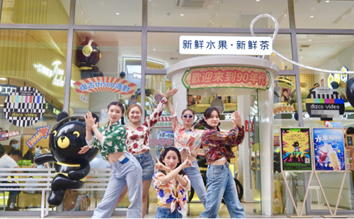 “穿越了!梦回90年代”“啦啦啦啦,尽情摇摆~”为配合“水果摇摇杯”系列上新,6月16日,在位于蚌埠的甜啦啦梦工厂店,举办了复古DISCO主题快闪活动,将DISCO舞蹈、怀旧金曲、童年零食与新式茶饮碰撞组合,满足新消费人群的情绪价值体验。