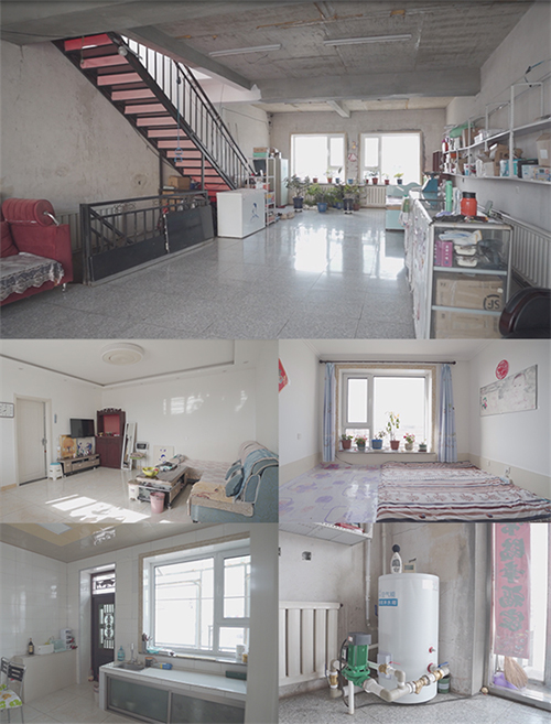 宫大姐的家位于蛟河市天北镇河南街,与镇政府隔街相望。二层砖混结构的小楼,一层比较空旷,只放了一处柜台,几座沙发,一堆绿植及冰箱、木板床等物品。顺着一楼尽头左边的楼梯往上走,就是客厅和卫生间,客厅的南边是两间卧室,家具不多,但却整洁干净。客厅的北面,则是厨房与阳台外廊。