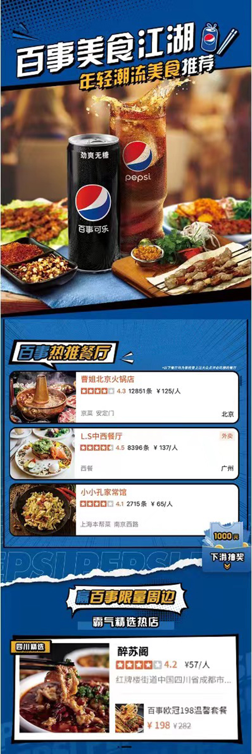 百事的尝试不止于此,这次合作是百事长线开启与美团、大众点评深度战略性合作的起点,百事亦希望以此为支点,撬动餐饮行业话题与业务兼收并蓄的变局。
