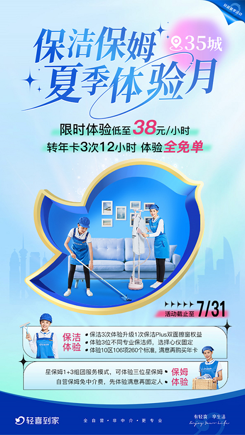 (图为轻喜到家保洁保姆夏季体验月活动海报)