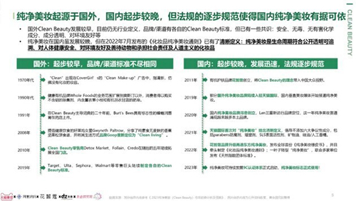 2019年,国内外品牌关注纯净美妆的初期,花皙蔻率先发布了2000+NEVERLIST禁用成分清单,禁用成分数量高于国内与欧盟标准,尽最大可能为消费者提供安全、无毒的纯净美妆,构筑化妆品成分安全墙;2022年,花皙蔻在风起云涌、竞争激烈的环境下陆续发布「纯净美妆绿皮书」、牵头定制中国「纯净美妆团体标准」,把行业里对“纯净美妆”安全、无毒、对环境友好的共识依赖,上升到更科学、更精准的定义:“纯净美妆是生命周期符合公开透明可追溯、对人体健康安全、对环境友好及善待动物和承担社会责任及人道主义的化妆品。”解决了行业里长期以来对于“纯净美妆”众说纷纭、概念模糊的乱象,让国内纯净美妆有标可依,有据可循;在2023年,花皙蔻又联合行业权威机构、品牌方、科研机构共同见证「纯净美妆可持续发展9C认证体系」启动,让上下游供应链共享共创「纯净美妆」的标准化。