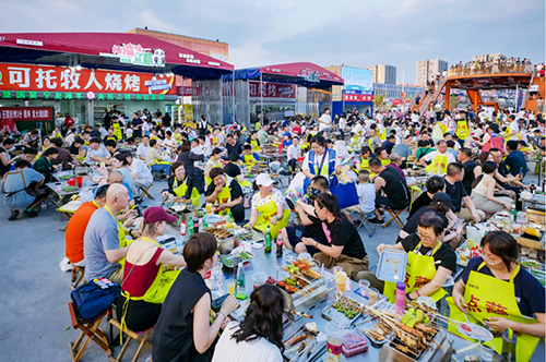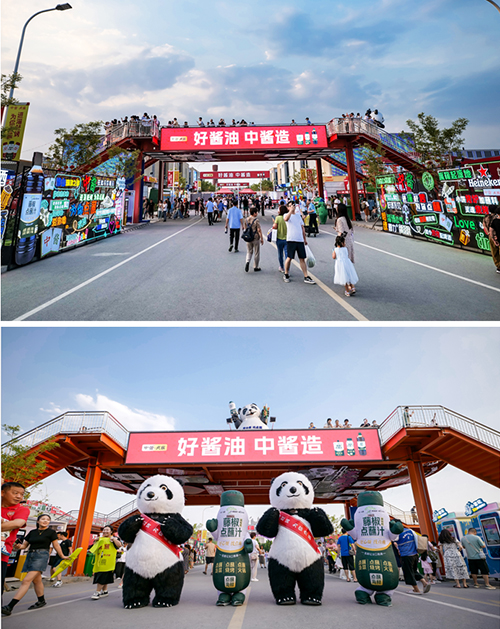 中酱点蘸汁的上市,更是为淄博烧烤出圈再添一把火。放眼海月龙宫万人“烤场”内,全场被中酱点蘸的美陈包围,更有玩偶游行、网红墙、点蘸打卡小屋、投壶赢好礼等超多花样嗨不停!
