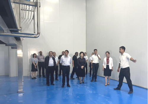 祖木热提·吾布力一行来到工厂实地参观开放式生产车间,智能化生产线,鲜奶预处理车间、净乳机、浓缩间、化验室等生产车间与设备仪器后,对工厂的生产建设工作提出指导性意见。