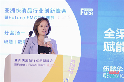 (尼尔森IQ中国区产品战略规划副总裁伍懿华发表演讲)