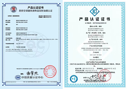 会上,中国质量认证中心产品认证二部部长袁亚青对厨房空调快速降温及耐油烟认证进行了解读。空调是否耐油烟,滤网油脂拦截、耐清洁能力很关键。经检测,海尔风管式空调采用的HRE高效油烟过滤网,油脂拦截率大于70%,耐清洁试验后滤网、进风格栅完好无损。同时还选用耐油烟升级面板材料,对关键部件做防腐处理等措施,做到由内而外不惧油烟。在制冷方面,空调创新采用全直流变频科技和PID控制技术,可快速降温。经综合判定,成功获得行业首批产品认证证书。