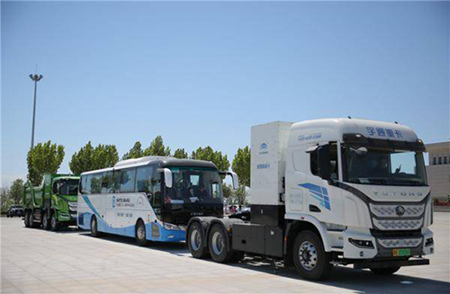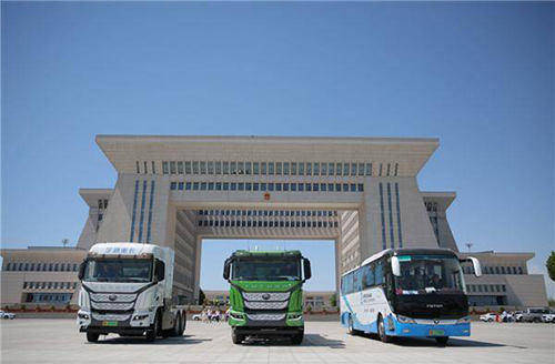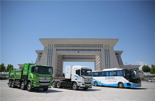 活动当日,在伊宁规划馆前,看到多辆氢燃料电池汽车已准备就绪,车队包含重卡、自卸车、大巴、乘用车等车型。据了解,氢燃料电池汽车使用氢气作为燃料,排放物只有水,没有有害气体排放,因此对于在交通领域减少碳排放具有重要意义。此外,氢燃料电池汽车还具有续驶里程长、加注时间短、动力性能好、运行噪音小等特点。