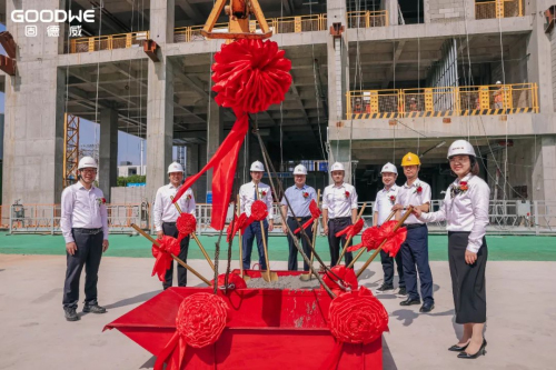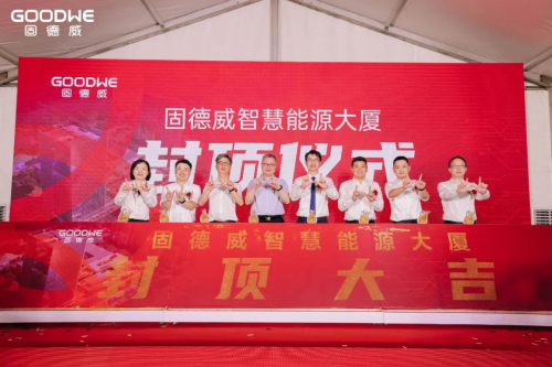 8月8日,位于苏州市高新区狮山街道塔园路西、横山路北的固德威智慧能源大厦迎来封顶仪式。苏州高新区狮山商务创新区党委书记、狮山街道、横塘街道党工委书记沈明生,固德威集团董事、副总经理方刚,中亿丰建设集团股份有限公司副总裁、南京总部董事长吴永辉,中衡设计集团总经理助理,精筑技术研究院院长丁炯,以及公司管理层领导等出席仪式,共同见证这一历史时刻。
