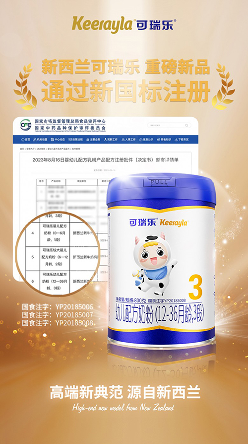 8月18日,国家市场监督管理总局食品审评中心官网公布,可瑞乐婴幼儿配方奶粉全系列均通过新国标注册,意味着可瑞乐将全面进入新超级配方时代!