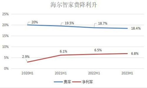 其四,数字化转型实现持续降费提效。财报显示,2023上半年海尔智家费率优化0.3pct。从历史数据来看,海尔智家费率实现3年连降,累计优化了1.6pct。上海申银万国在研报中指出,海尔智家2023H1净利率为6.8%,同比+0.3pct,创2017年以来同期新高。可以说,随着海尔智家持续兑现降费提效,其利润空间将被进一步释放。