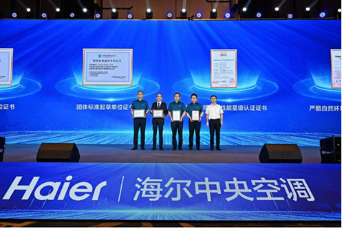 从行业和第三方评价来看,峰会现场,海尔空调主导制定的《空调全频运行性能评价技术要求》团体标准正式发布,海尔中央空调相关产品也获得了3项权威机构认证:空调器全频运行性能星级认证(五星)、严酷自然环境实地认证、产品特性认证。就在上个月,卡萨帝中央空调鉴赏家天氟地水系列还获得了“云鼎奖-2023年度悦享健康趋势产品奖”,海尔空调原创AI墅居气候系统也获得“2023年H1中国地产精装住宅部品配套产品创新奖精辉奖”。