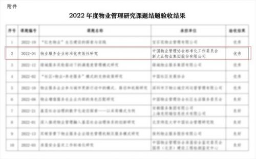 作为中国物业管理协会标准化工作委员会秘书处承担单位、全国服务业标准化试点单位,新大正先后在重庆市地方标准、物业行业团体标准、国家标准等众多层级起草发布相关标准,先后起草发布了《商务楼宇物业管理服务规范》《高校物业管理服务规范》等多项地方标准,以及编制了《机场航站楼物业服务规范》团体标准,在推动行业规范发展的道路上,持续发挥着专业的力量。此外,由新大正承担的中国物业管理协会2022年年度课题《物业服务企业标准化有效性研究》也成为中物协当年五个优秀课题之一。
