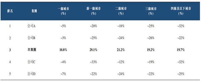 图表3:2022年中国新式茶饮店市场前五大参与者按城市等级划分的门店分布