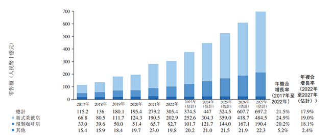 图表1:2017年至2027年(估计)按类型划分的中国饮品店行业市场规模