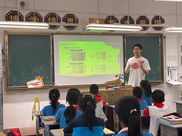 浙商银行南昌分行的志愿者们也结合专业知识,为学校的孩子们带来一堂金融知识小课堂。课堂从货币起源小故事中拉开了序幕,由最早时期的贝币到春秋战国时期的金属货币,再到方孔圆钱货币的演变发展过程,让孩子们在故事中领略了货币文化的魅力。志愿者通过寓教于乐的形式,现场为孩子们讲解“一转、二模、三透光”的识假小技巧,极大地激发了孩子们的兴趣,有效引导小朋友们打开了学习金融知识的大门。
