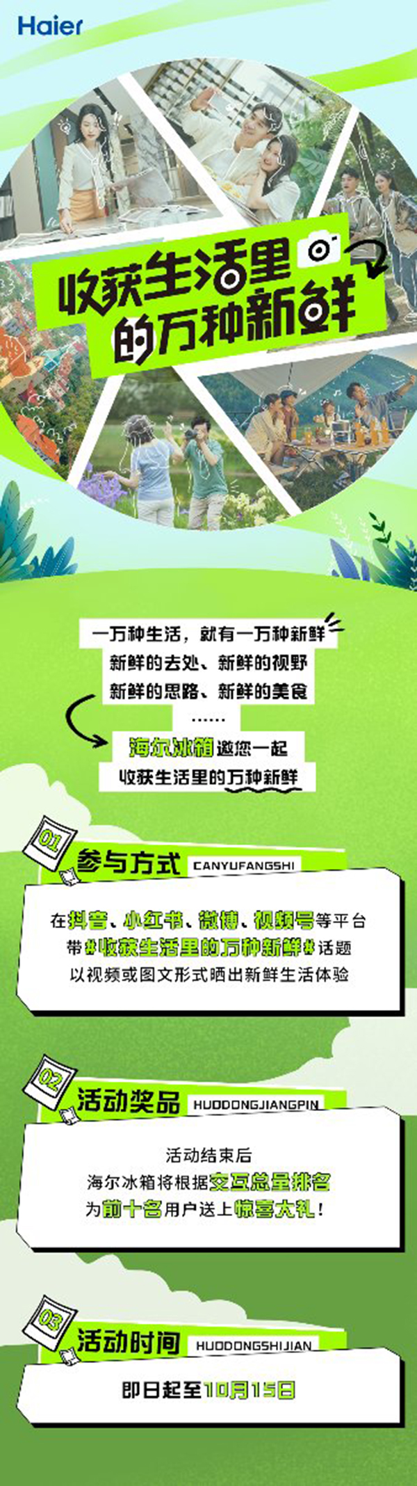 新鲜不止一面,也正因如此生活可以无限精彩。作为行业领头羊,海尔冰箱除了以核心科技守护用户新鲜饮食生活,还邀您一起收获生活里的万种新鲜:即日起至10月15日,带话题#收获生活里的万种新鲜#分享您的新鲜生活,就有机会获得惊喜大礼。