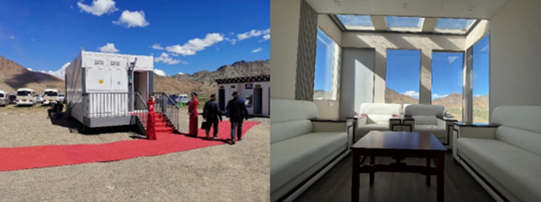 中国建筑研发的“零海拔指挥部”已在川藏铁路项目稳定运行了2年,“零海拔酒店”已在拉萨建设使用满1年;2023年,西藏军区首座“零海拔营房”正式投入使用,“零海拔天文观测站”落地新疆帕米尔高原;同年,“零海拔混凝土别墅”交付使用,实现民用建筑全屋等效零海拔,还原平原地区居住体验。(企业供图)
