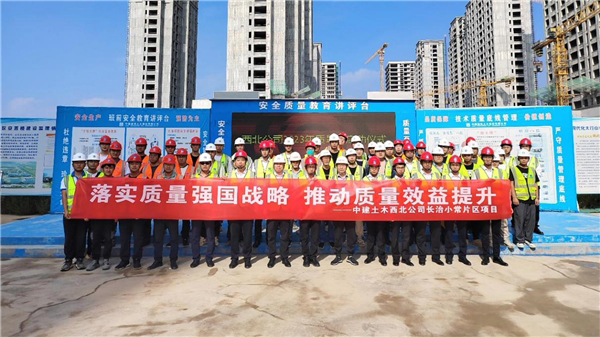 中建土木西北公司2023年质量月启动会暨三季度质量总监实训营在长治项目顺利召开。西北公司总工程师翟晓强、质量总监杨丽军、项目执行经理王鹏、西北公司各项目质量负责人、长治项目建设单位代表、监理代表、管理人员及工友参加活动。