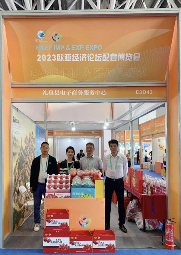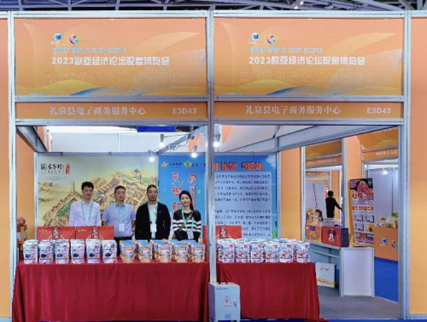 为借此机遇提升陕西省礼泉县农特产品的品牌影响力,扩大产品推广、销售渠道。礼泉县电子商务服务中心积极为企服务,组织君德宝种植养殖专业合作社、陕西一方美味农牧科技有限公司、陕西哎呀喂电子商务有限公司4家农民专业合作社、涉农企业携苹果、葡萄、黄桃、冬枣以及西梅干、灰枣片、无核杏干、黑桑葚干、苹果脆片等20余种礼泉县名特优品参与展出销售。