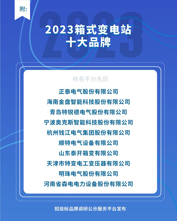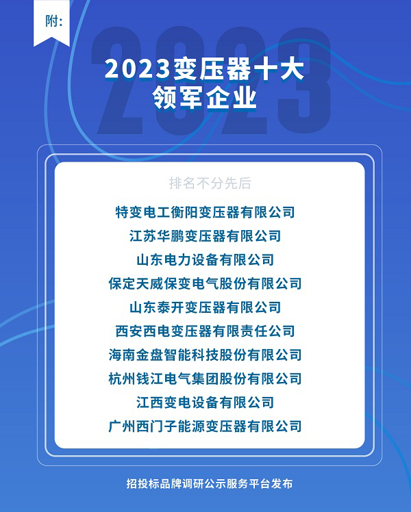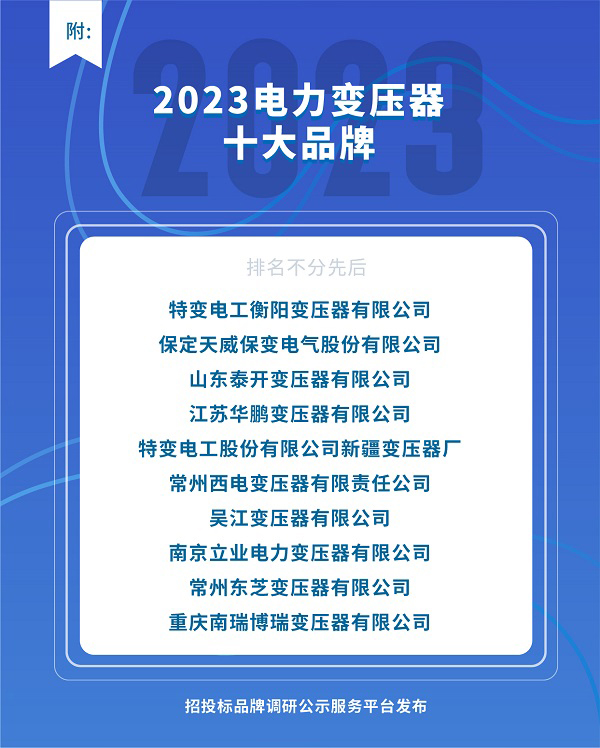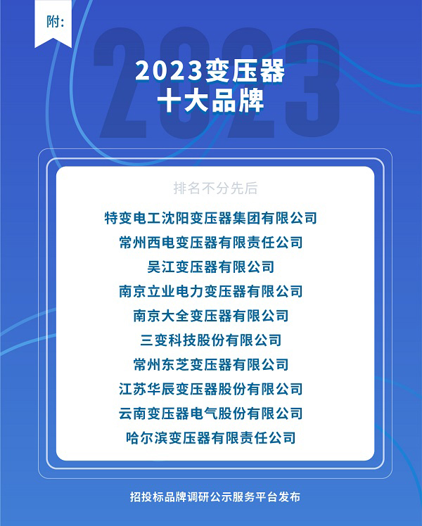 近日,由招投标品牌调研公示服务平台举办的“2023变压器招标采购评价推介”活动落下帷幕,活动历时2个月,得到了全国307家业内知名变压器企业的积极参与,受到招投标各方的广泛关注。在评选过程中,备受业界关注的“2023变压器供应商综合实力50强”、“2023变压器十大领军企业”、“2023箱式变电站十大品牌”、“2023电力变压器十大品牌”、“2023配电变压器十大品牌”、“2023特种变压器十大品牌”等十几个榜单逐一发布,这些榜单是主办方基于对参选企业品牌实力和市场表现的全面评估,并通过严格甄选得出的结果,为政府集采或央企、国企招标项目选择变压器供应商提供了更加全面的参考依据。