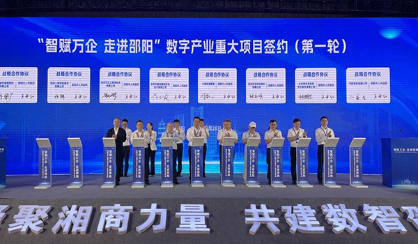 在重点项目签约仪式中,中联数据集团董事长周康作为代表与邵阳市人民政府、亚信安全科技股份有限公司签署关于参与“数字邵阳”的规划设计、建设、运营的三方合作协议,三方将围绕数字化建设及数据“资源化、资产化、要素化”发展开展全方位合作。同时,邵阳城兴科技发展有限公司与湖南云港数据科技有限公司签订了智算业务合作协议。