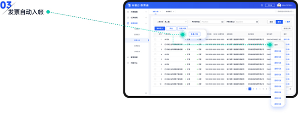 在进项发票管理方面,标普云·数票通可以做到集发票收集、验真验重、三单匹配、智能预勾选、电子存档和风险预警于一体,实现了从查验、入账、抵扣、存储等全过程的电子化管理。