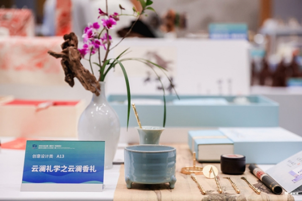 创意设计类,来自浙江云澜湾文化产业有限公司的云澜礼学之云澜香礼获得金奖,来自江苏南通大学的“一漆一会”文创和来自嘉善全域文旅发展有限公司的“根植沃土”系列文创获得银奖。