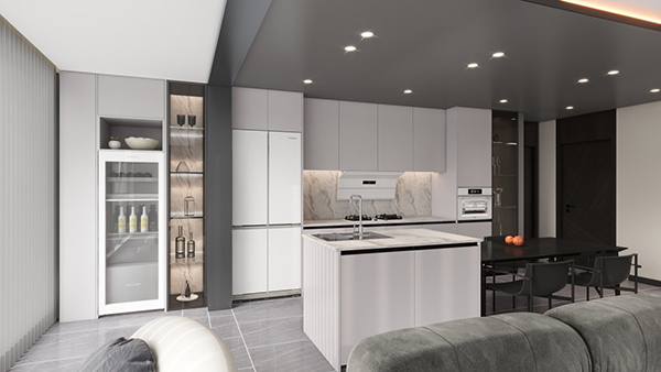 在过去一年里,光年厨房凭借零距离平嵌技术在行业掀起了一场白色风暴。这一次,三翼鸟智慧厨房针对小区用户厨房焕新的痛点,对光年厨房进行了迭代,纳新了790mm平台的T型门501L冰箱。这样一来,从600mm到800mm,再到1200mm,不同橱柜宽度和容量需求的用户,就可以自由匹配冰箱组合,完美嵌入橱柜,同时,还可以选配单抽、双抽、亚式,不同高度的洗碗机和365L的嵌入式酒柜。新升级的光年厨房,型号更丰富、可选度更高,更能满足您对完美厨居的想象。