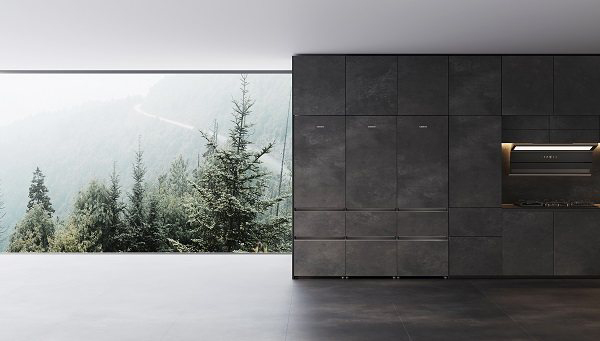 继为用户带来“内外兼修”全新厨居体验之后,融境厨房全厨再次亮相峰会,又带来了场景及产品的双向提升。第一,厨房场景品类进一步丰富。在嵌入式冰箱完全隐于橱柜基础上,烟机也实现了从350mm到325mm的尺寸突破,匹配厚度从66mm降到40mm的灶具,实现烟机“正面全隐、底面齐平”,灶底壳与台面翻边下沿平齐。同时,蒸烤箱原创“自开合门体锁闭系统”,省掉把手,全套实现全厨全隐全嵌。