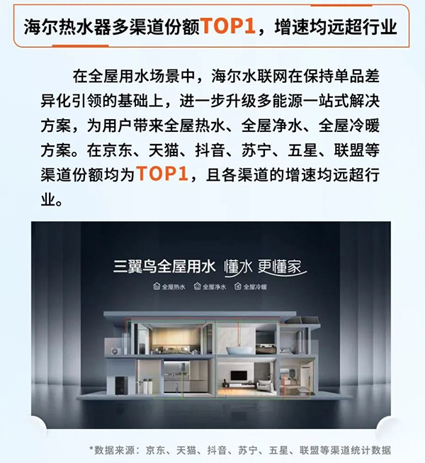 10月30日晚间,海尔智家发布2023年三季报。财报显示,海尔智家前三季度实现营收1986.57亿元,同比增长7.5%;归母净利润131.49亿元,同比增长12.7%,利润增速持续超营收增速。其中热水器产业增长趋势明显,在京东、天猫、抖音、苏宁、联盟、五星等多渠道份额均为TOP1,同时在各渠道增速也远超行业。那么海尔热水器实现高份额高增长的动力来自何处呢?是聚焦用户需求,在持续创新产品科技的基础上,进一步升级多能源一站式解决方案,以用水品质提升换市场份额增长。