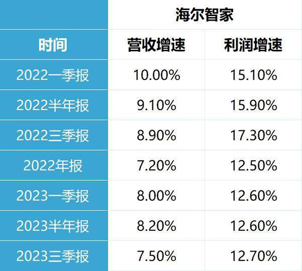 而在近2年来的7次财报中,海尔智家的利润增速都超过了营收增速。这在家电行业头部企业中做到了两个唯一:唯一利润增速持续超营收增速,唯一利润增速持续两位数增长。