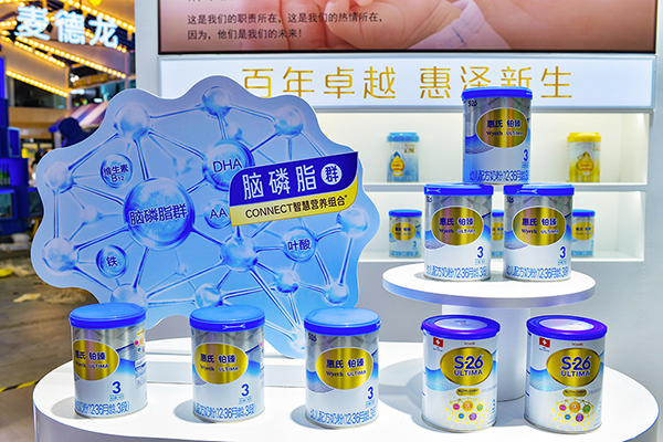 此次进博会展出的惠氏S-26铂臻新国标产品于今年6月全面上市。全新配方升级基于全球首个婴幼儿脑神经成像CONNECT脑连接临床研究重磅成果,由瑞士脑认知实验室联同国际权威学术机构超过5年的临床实证,突破性推出以脑磷脂群领衔的CONNECT智慧营养组合,科学配比6种关键智慧营养,是全球首个临床实证可有效加速婴幼儿脑连接的营养组合:大脑神经网络密度+36%,大脑连接速度提升2.5倍;有效激发宝宝反应力+15%、专注力+65%、思维力+13%,三大脑动力奠定宝宝大脑高级认知功能的基础。新国标产品不仅在宝宝早期大脑发育方面具备领先科研实力,还添加双短链益生元和天然OPO,双重助力宝宝消化与吸收,并采用鲜奶一次入料工艺,更好锁住新鲜营养,工厂距奶源地瑞士阿尔卑斯高山牧场仅50KM,100%瑞士原装原罐进口,更有瑞士官方授信,荣膺“瑞士智造典范”。
