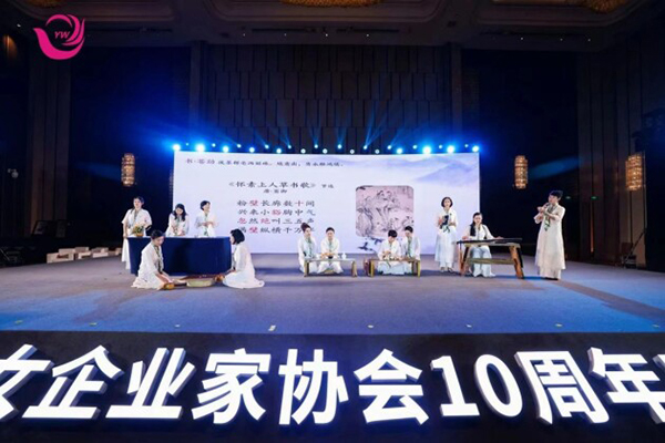 义乌市女企业家们通过合唱、朗诵、舞蹈、琴棋书画等丰富多彩的表演,展现多才多艺的巾帼风采。