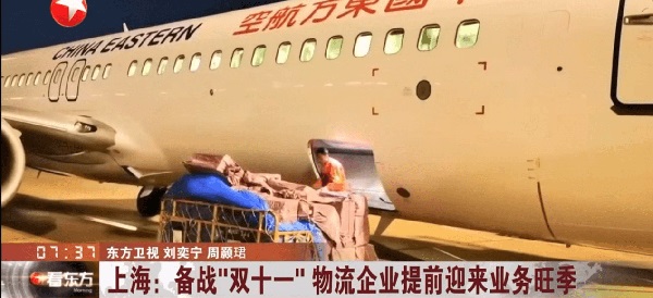 跨越速运上海虹桥机场分拨业务负责人在接受东方卫视采访时表示:“跨越速运有19架全货机,是3C电子(信息家电)、服饰、五金、汽车配件等企业客户的货量已经比平时增了将近50%的量。为应对旺季攀升的业务量,跨越速运虹桥分拨中心在10月份新招录了15名员工,货运车辆也从25台增至35台,这些货运车辆不断往返于进出港操作平台和分拨站点。为保证当日达次日达时效,分拨站点合理部署人员实现24小时不间断服务,同时调配闲置资源,规划最优线路,把整体工作效能提升了三成。”