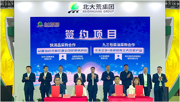 在北大荒集团“冬日好食光·惠选北大荒”博览会专场主题营销活动中,九三食品公司与哈尔滨新世纪家得乐商贸有限公司进行了九三包装油采购合作签约,现场作了九三智当嘉有机核桃油新品推介,王喜刚出席并见证签约仪式。